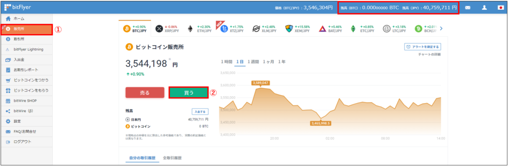 - アプリを起動: ビットフライヤーのスマホアプリを開き、販売所のタブを選択します。
