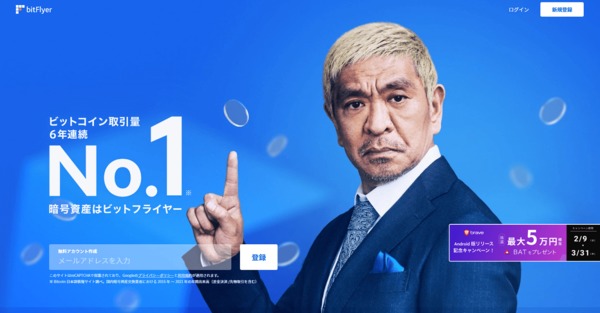 - ビットフライヤー公式サイトまたはアプリにアクセスし、メールアドレスを登録します。