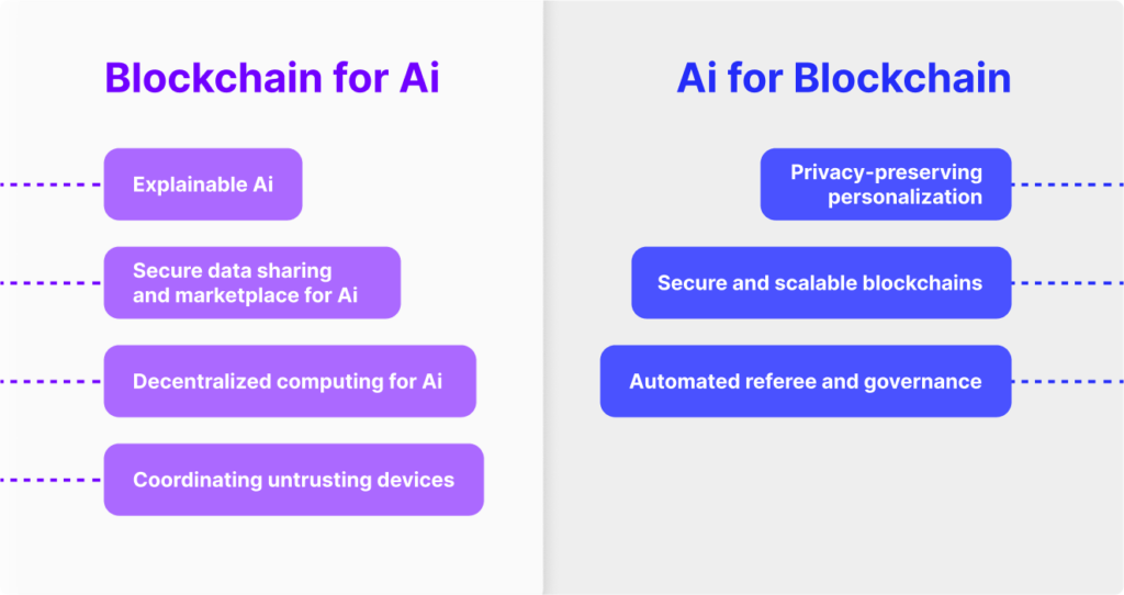 AIとブロックチェーン技術の統合は、新たなユースケースを生み出し、市場に大きな影響を与えています。AIはデータ分析や自動取引、セキュリティ強化など、暗号通貨市場における多くの課題を解決するツールとして活用されています。特に、詐欺検出や異常取引の早期発見などでAI技術が役立っています[8][9]。 - 新しい投資機会