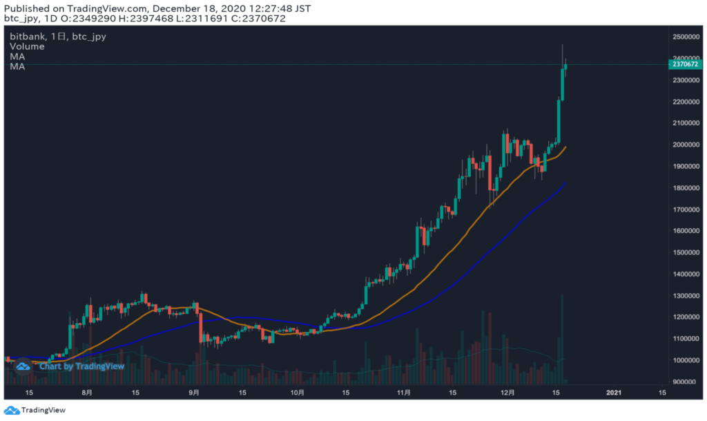 仮想通貨の長期的な予測を行う場合には、ローソク足と合わせて移動平均線と呼ばれるインジケーター(指標)が多く利用されます。