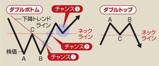 二番天井・二番は、『ダブルトップとダブルボトム』とも呼ばれ、ヘッド・アンド・ショルダーズと同様、トレンド転換を判断する分析法の1つです。